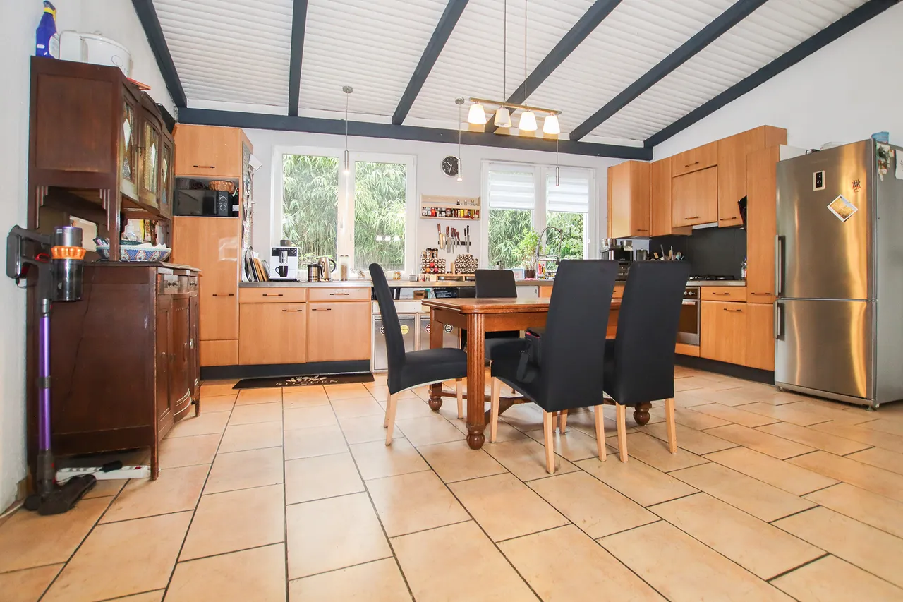 Der Anbau begeistert mit einer großzügigen Wohnküche und einer überdachten Terrasse.