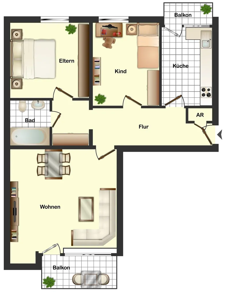 Das Highlight der Wohnung sind die beiden Balkone – hier können Sie die Sonne zu jeder Tageszeit entspannt genießen.