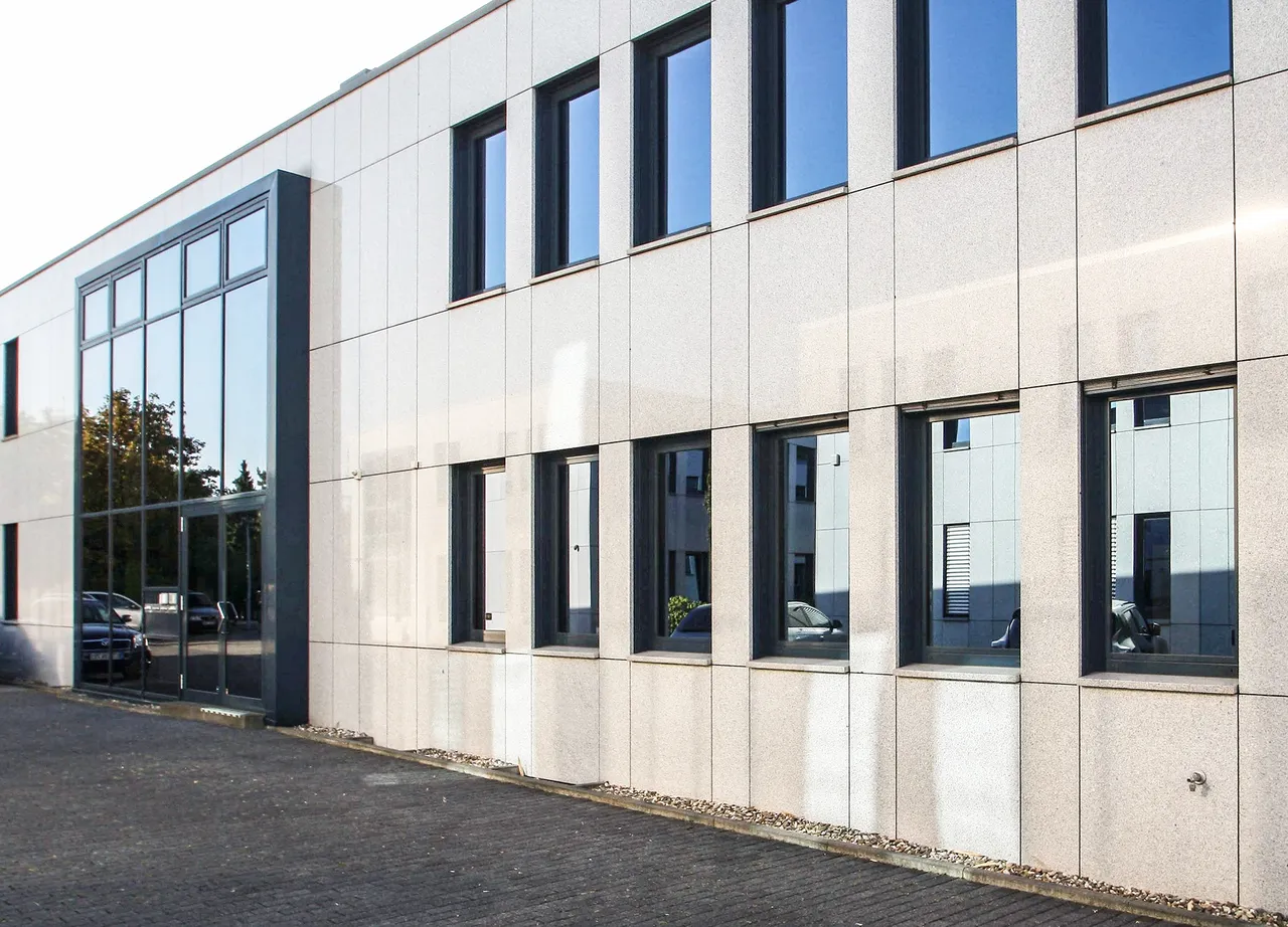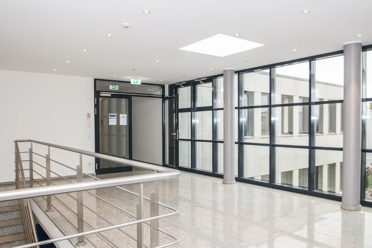 Das moderne Bürogebäude wurde 2003 in zeitlos eleganter Architektur erbaut. Granitfassade, viel Glas, elektrisch bedienbarer Sonnenschutz und moderne Sanitärbereiche machen das Arbeiten zum Vergnügen. Das Gebäude ist klimatisiert und gekühlt. In Verbindung mit den getönten Scheiben ist angenehmes Arbeiten im Sommer garantiert.