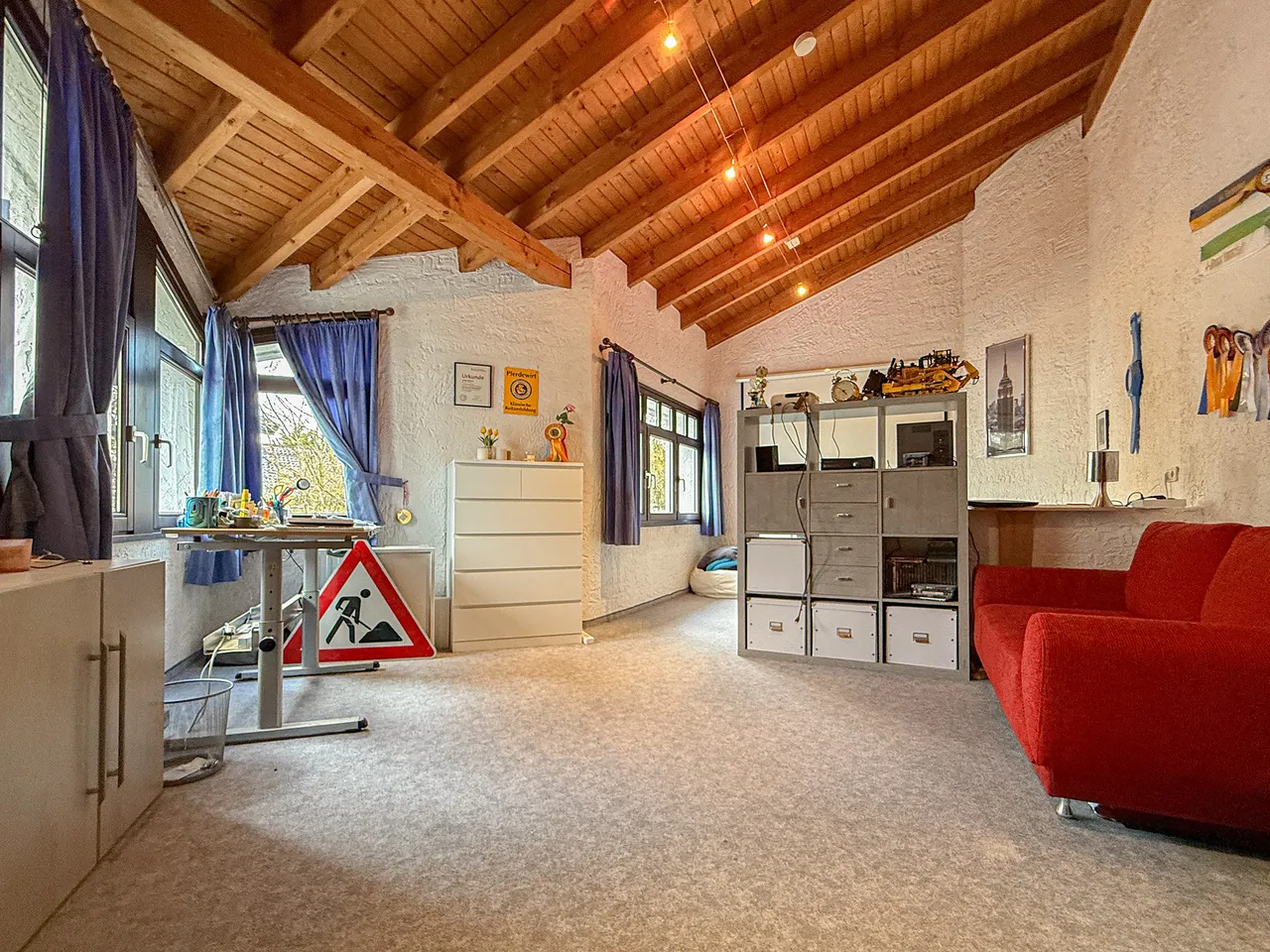 Das über 3 m hohe Dachstudio mit Duschbad eignet sich ideal für den heranwachsenden Teenie, Gäste oder als Home-Office.
