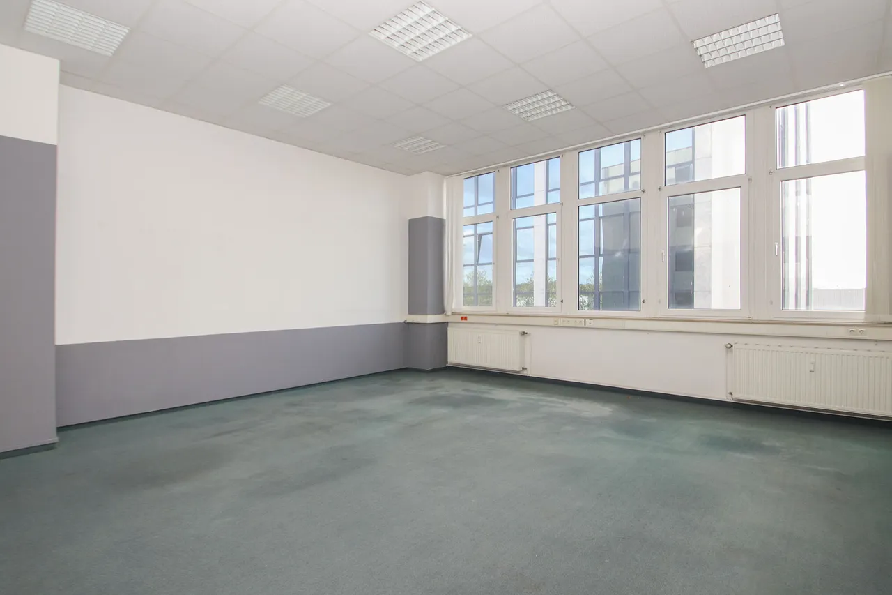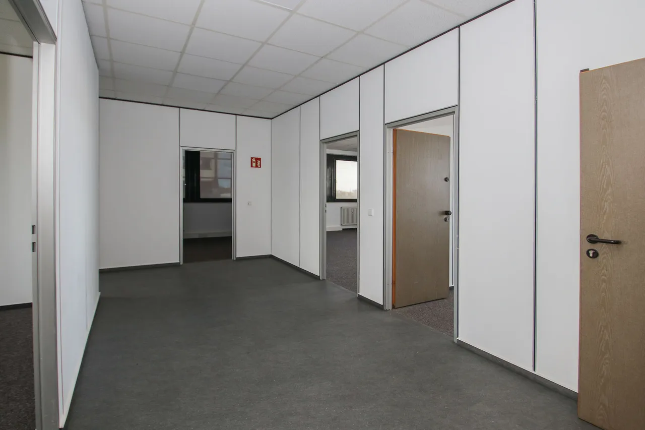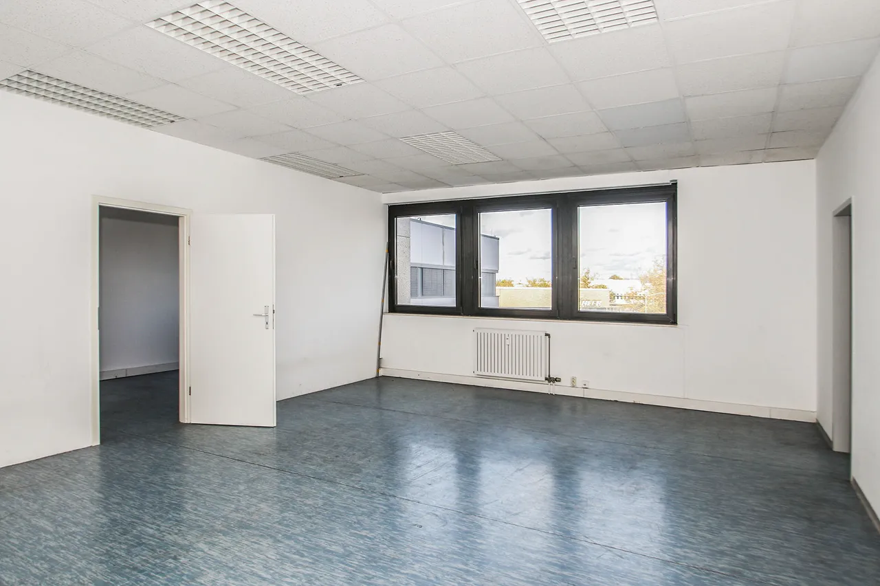 Verkehrsgünstig, nur drei Minuten von der A 52 entfernt, bieten diese Büro- und Lagerflächen flexibel Platz für Ihren individuellen Bedarf.