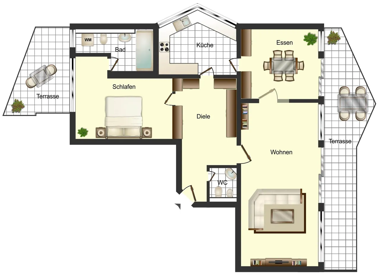 - Wohnfläche ca. 149 m² inkl. 21 m² Terrassen (½)